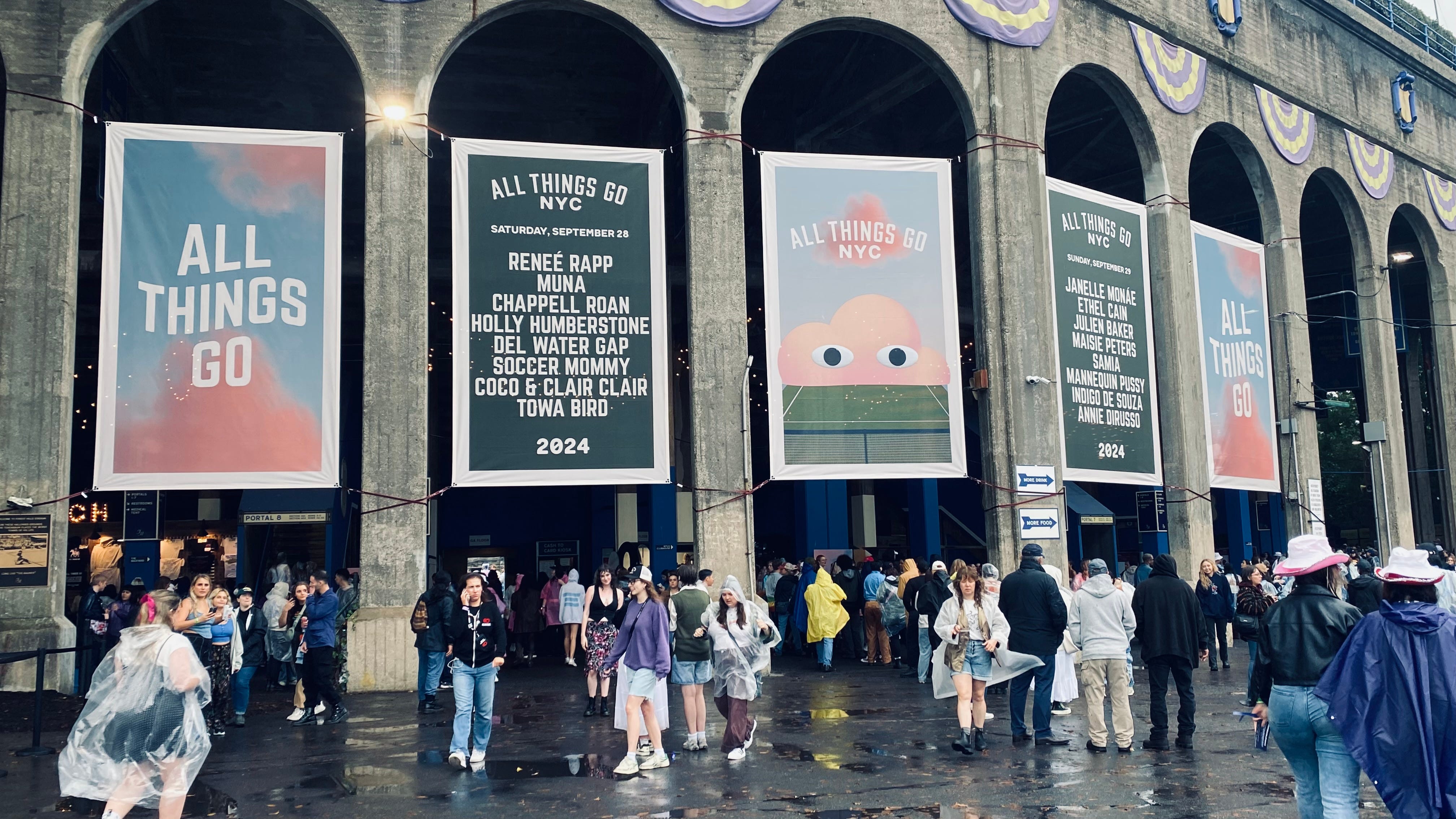 Her absence from the festival itself was thoroughly felt, but not for lack of good music. Janelle Monae was there performing her immaculate House of Pleasure set, as was Ethel Cain, MUNA, Renee Rapp, Julien Baker, and many more queer artists. But Chappell Roan canceled way too soon for the probably underpaid Queens stadium workers to take her name down from all the flags and colored placards surrounding the building and stands. And it was far too late to change any of the merchandise from shirts with graphic skeletons wearing pink cowboy hats and boots to posters and memorabilia, all with her name on them